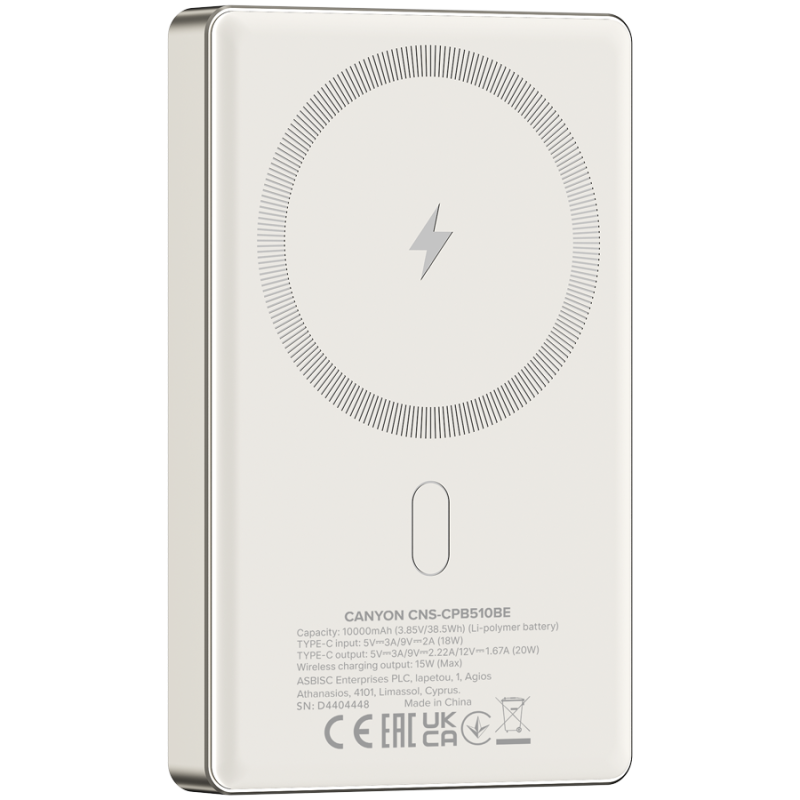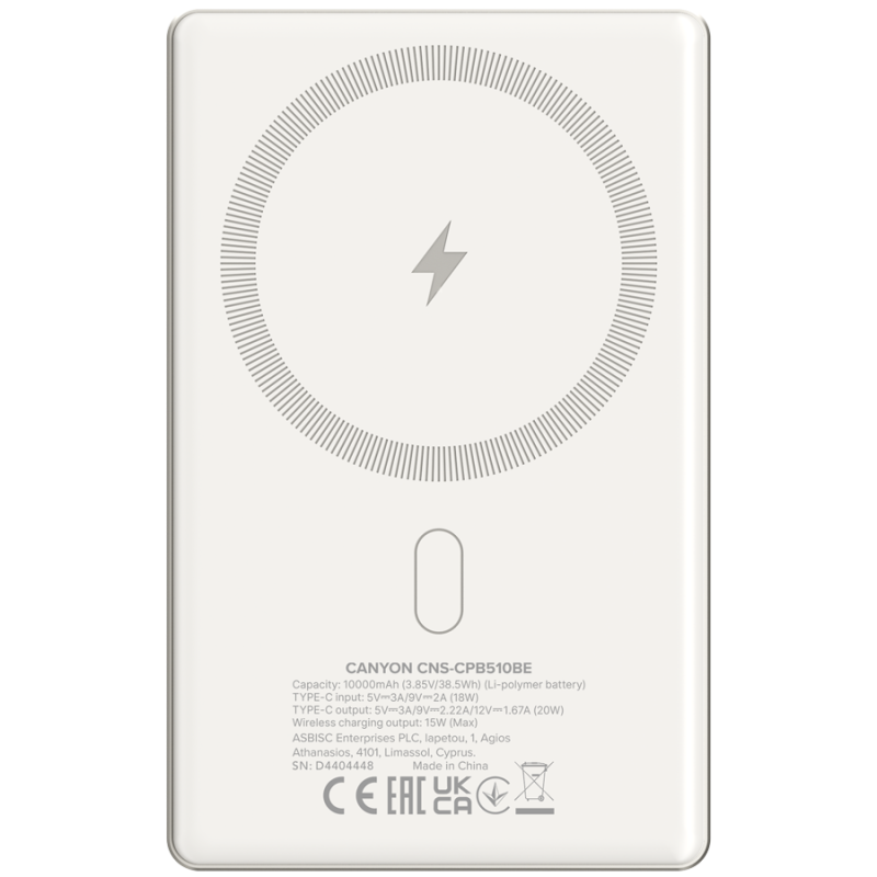 CANYON power bank OnPower 510 slim Magnetic 10000 mAh PD20W Beige