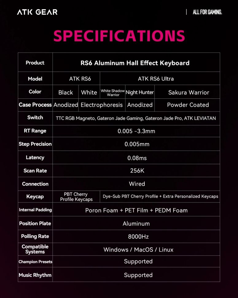 ATK Professional Gaming Mechanical Keyboard RS6 - 8K, Gateron Jade Pro Switches [Linear] - White