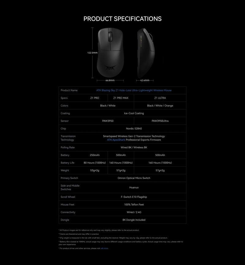 ATK Wireless Gaming Mouse Z1 PRO MAX - 8K, White