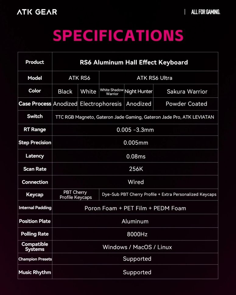 ATK Professional Gaming Mechanical Keyboard RS6 Ultra - 8K, TTC RGB Magneto [Linear] - Night Hunter
