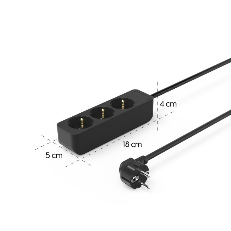 Hama 3-Way Power Strip, with Incr. Touch Protect., 1.4 m, black