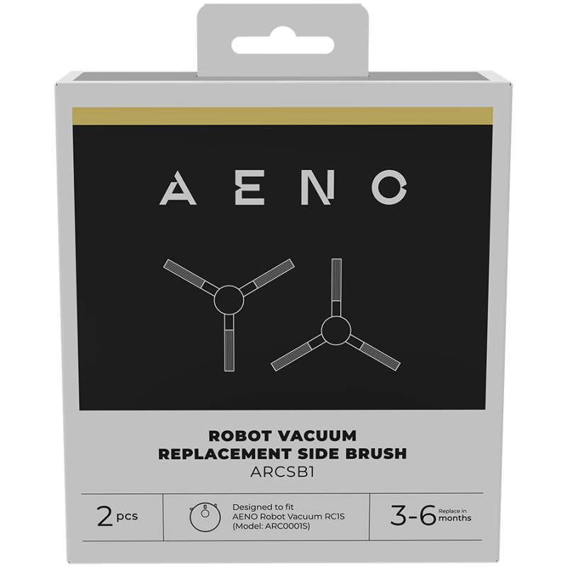 :Warranty period: 2 years. The warranty does not cover normal wear and tear.<br/>2 pcs. included<br/>ARCSB1 set of replacement side brushes for AENO RC1S Robot Vacuum Cleaners<br/>Composition: ABS, TPU<br/>Replace every 3-6 months<br/>Useful life: 200 h...
