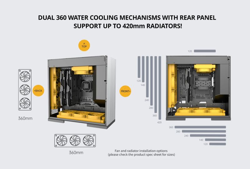 ПОДДРЪЖКА НА ВОДНО ОХЛАЖДАНЕ | 360 mm - Отдолу 280 mm - Отдолу 240 mm - Отдолу 120 mm - Отдолу 420 mm - Отзад 360 mm - Отзад 280 mm - Отзад 240 mm - Отзад 140 mm - Отзад 120 mm - Отзад 120 mm - Отгоре |