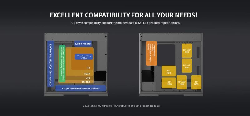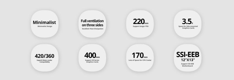 The 3.5x PCI-E slot width ensures the air intake of the side-mounted graphics card