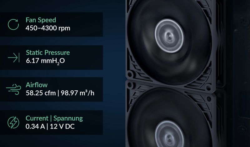 | ДРУГИ | Optimised for High Static Pressure 0 dB Mode - Zero rpm Virtually Silent due Fluid Dynamic Bearing Cable Length: 400 mm |