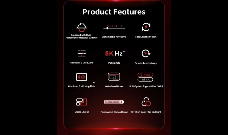 Madlions професионална геймърска механична клавиатура Professional Gaming Mechanical Keyboard MAD 60 PRO - Black, 8K, Sealed Silver Magnetic [Linear]
