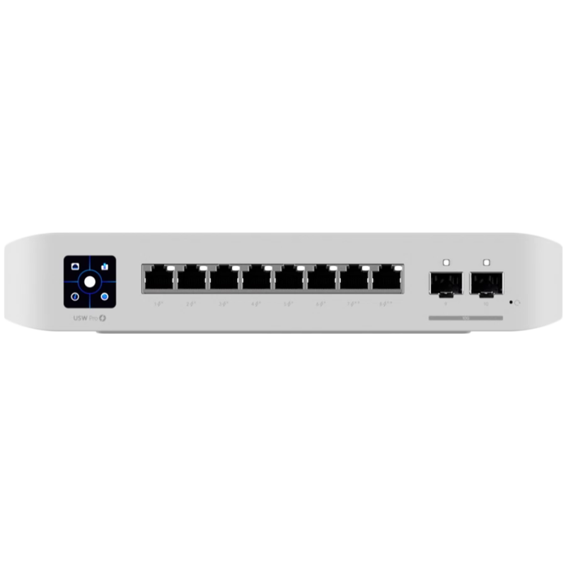 Ubiquiti USW-Pro-8-PoE-EU An 8-port, Layer 3 switch with PoE+ and PoE++ output. Can power devices with up to 120W, with a power consumption of 30W (Excluding PoE output)