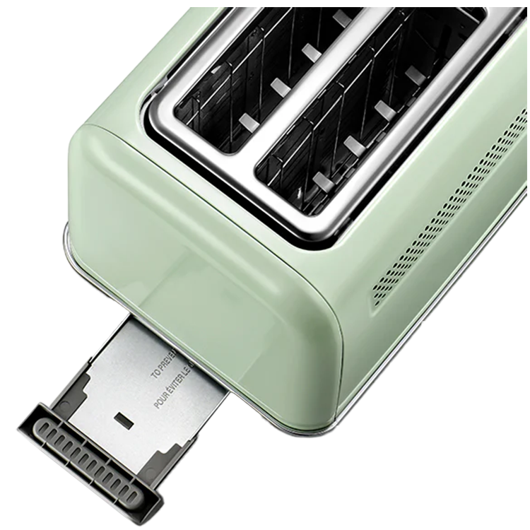 Toaster is thoughtfully designed to accommodate small kitchens with limited counter space or outlets. Featuring an impressive 1-meter cord, this toaster provides the flexibility you need to position it conveniently, even in tight spaces. The extra-long cord ensures that you can easily reach an outlet without having to rearrange your kitchen setup. Even better, the cord coils up neatly into its own storage space at the bottom of the toaster, keeping your countertop tidy and free from clutter. This practical design feature not only enhances the toaster's usability but also contributes to a clean and organized kitchen environment.