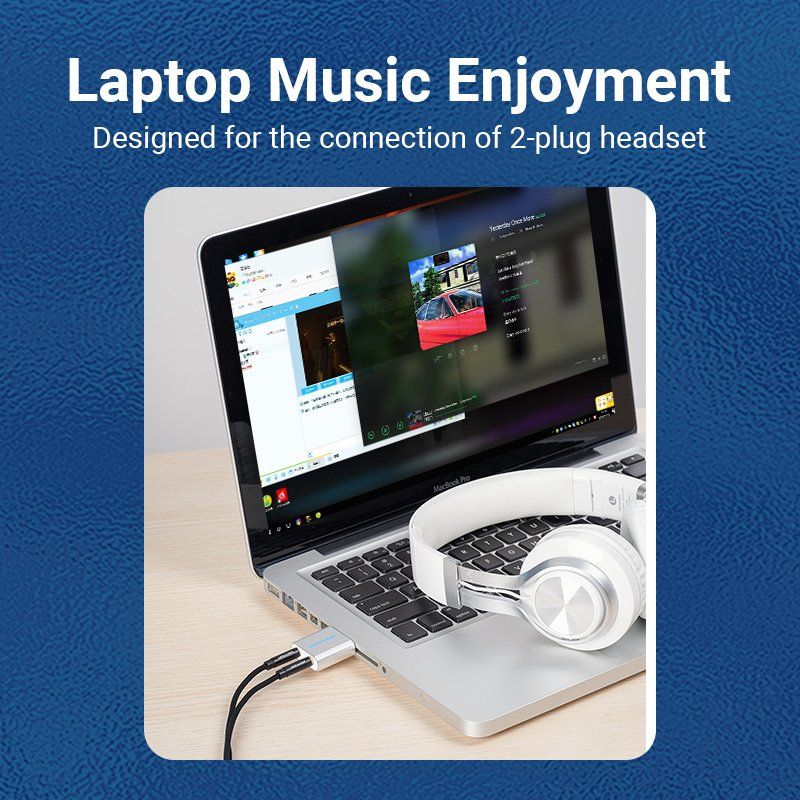 Vention външна звукова карта USB Sound card - Headphones, Mic, Silver - VAB-S13