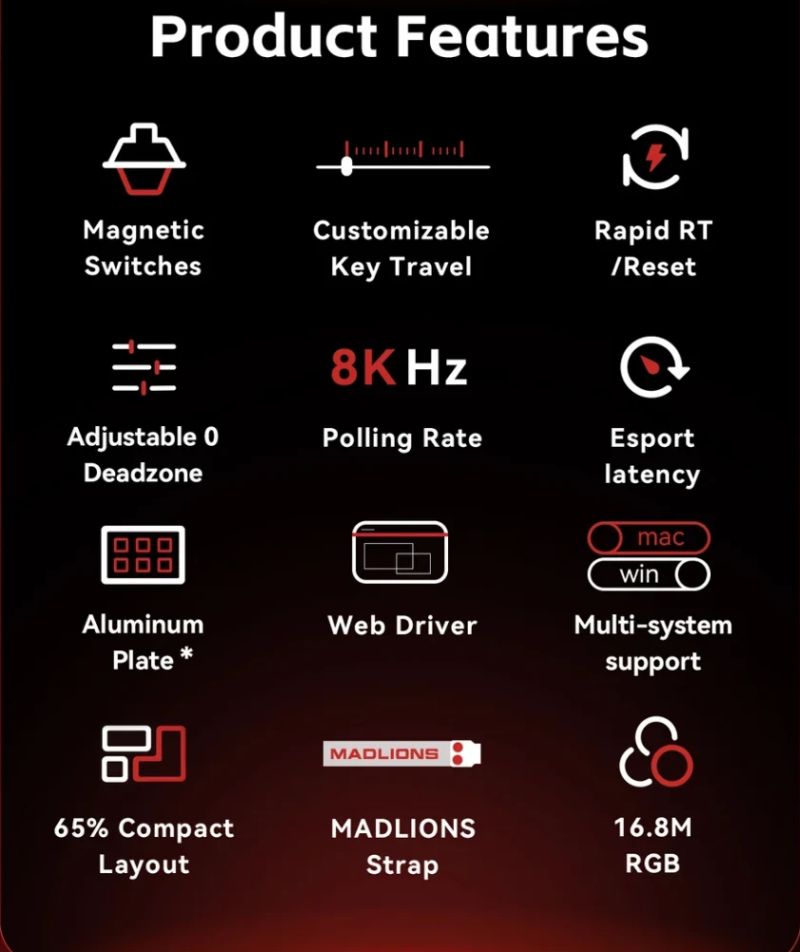 ДОПЪЛНИТЕЛНИ | 1K Polling Rate Customizable Key Travel Rapid RT Reset Esport Latency Adjustable 0 Deadzone 16.8M RGB Madlions Strap |