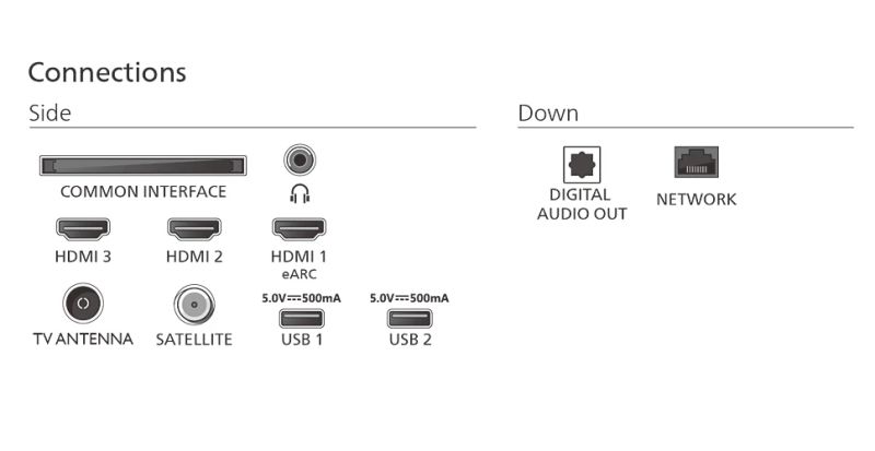 Изводи за свързване:3 HDMI, 2 USB 2.0, RJ-45, 3.5 mm audio jack, Digital audio optical out