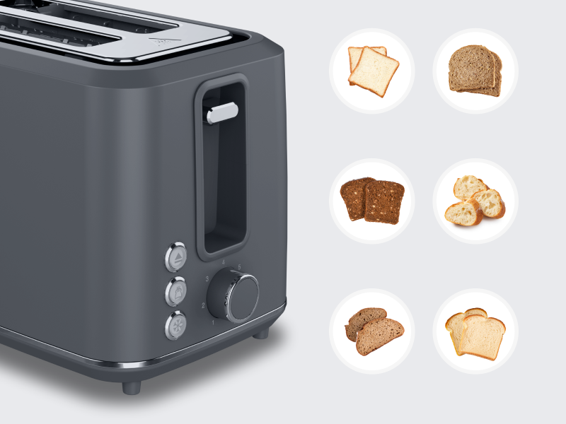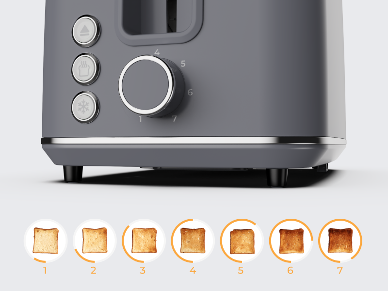 Electric Toaster, Grey, 220-240V, 50-60Hz, 920-1080W, 2 slots, 3 modes, 7 browning levels