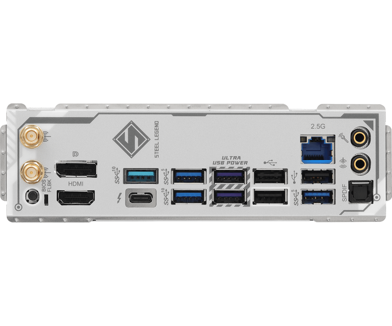 I/O:2 x Antenna Ports;1 x HDMI Port;1 x DisplayPort 1.4;1 x Optical SPDIF Out Port;1 x Thunderbolt™ 4 Type-C Port (40 Gb/s for USB4 protocol; 40Gb/s for Thunderbolt™ protocol);2 x USB 3.2 Gen2 Type-A Ports (10 Gb/s);4 x USB 3.2 Gen1 Ports;3 x USB 2.0 Ports...