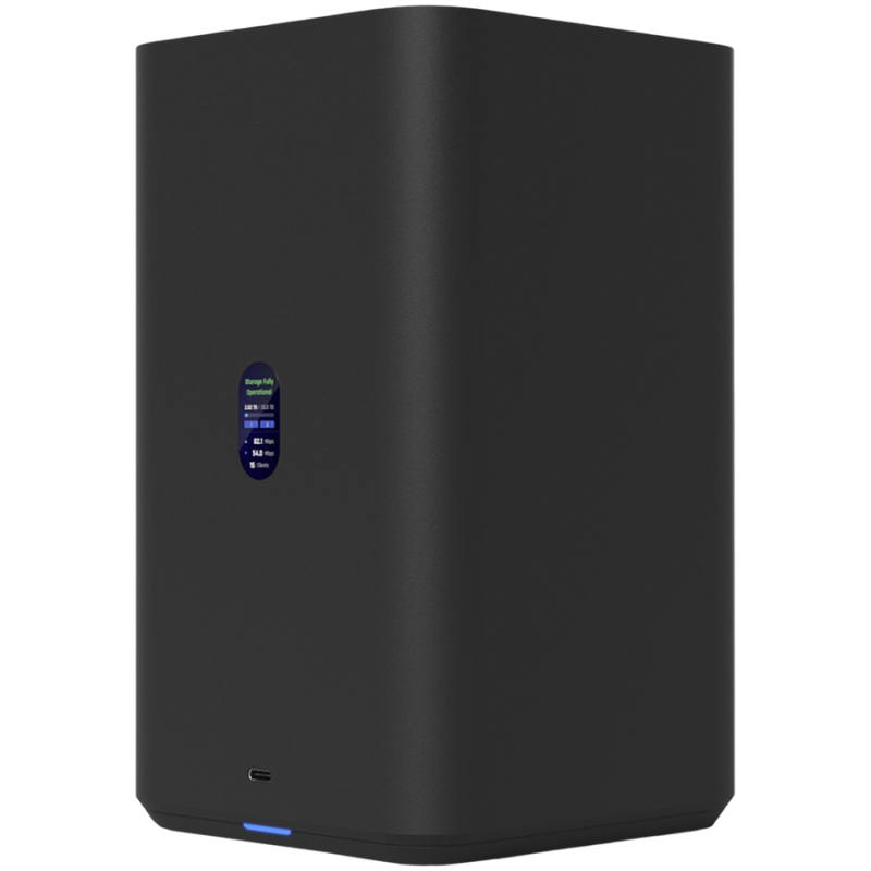 Ubiquiti UniFi UNAS-2-W-EU Network Attached Storage with (2) 3.5inch HDD bays, 2.5 GbE networking, USB-C connectivity, and an included PoE++ adapter, all in a compact footprint, black