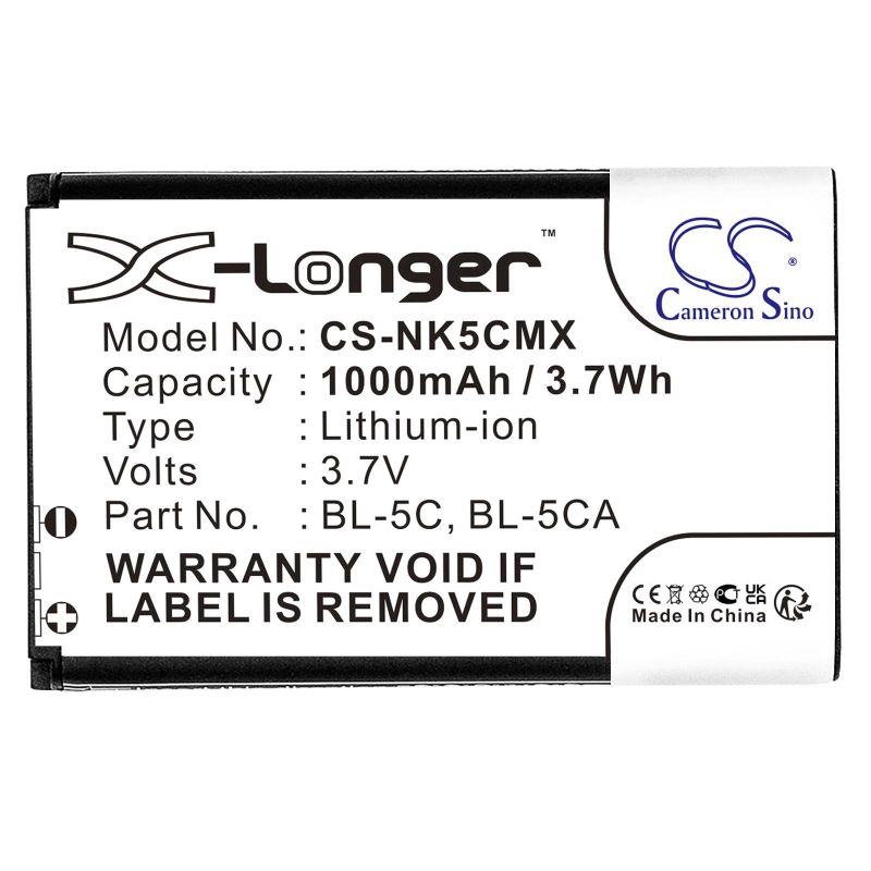 Батерия за мобилен телефон CAMERON SINO BL-5C, за Nokia 105 2700 3110 5130 6230 E50, 3.7V, 1000mAh