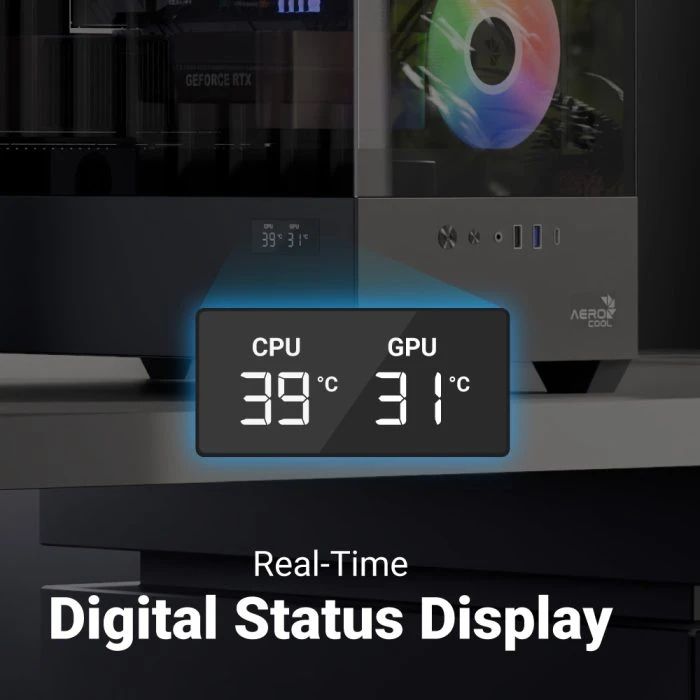 | ДОПЪЛНИТЕЛНИ | Full tempered glass front and side panels showcase your build in stunning detail Includes three 120mm ARGB fans (two reverse-blade) with Rifle Bearing Supports GPUs up to 418mm for top-tier gaming and creative performance Fits CPU air coolers up to 165mm for powerful and quiet cooling Magnetic and PVC dust filters make cleaning fast and hassle-free Snap-fit side glass panel allows easy upgrades and maintenance Comes with a real-time digital status display built into the case exterior |