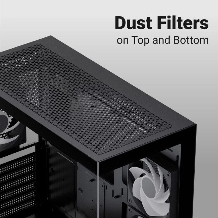 Full tempered glass front and side panels showcase your build in stunning detail