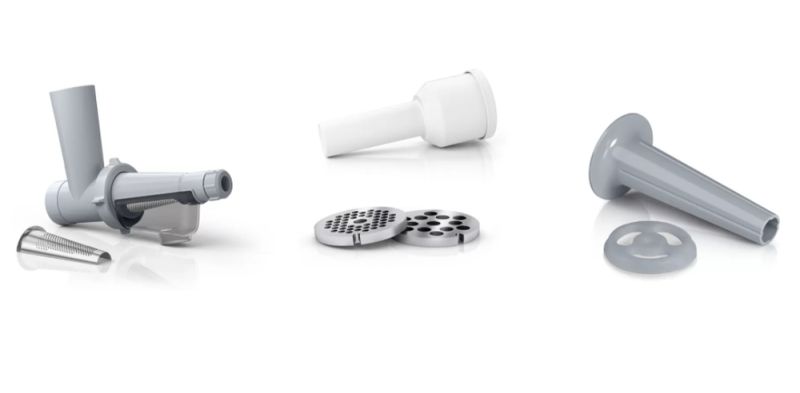 Месомелачка Bosch MFW2515W, Meat mincer, SmartPower Meat mincer from SmartPower range: 1500W, 1,7 kg/min, 2 sieves, 1 sausage horn, fruit press attachment, no reverse, white