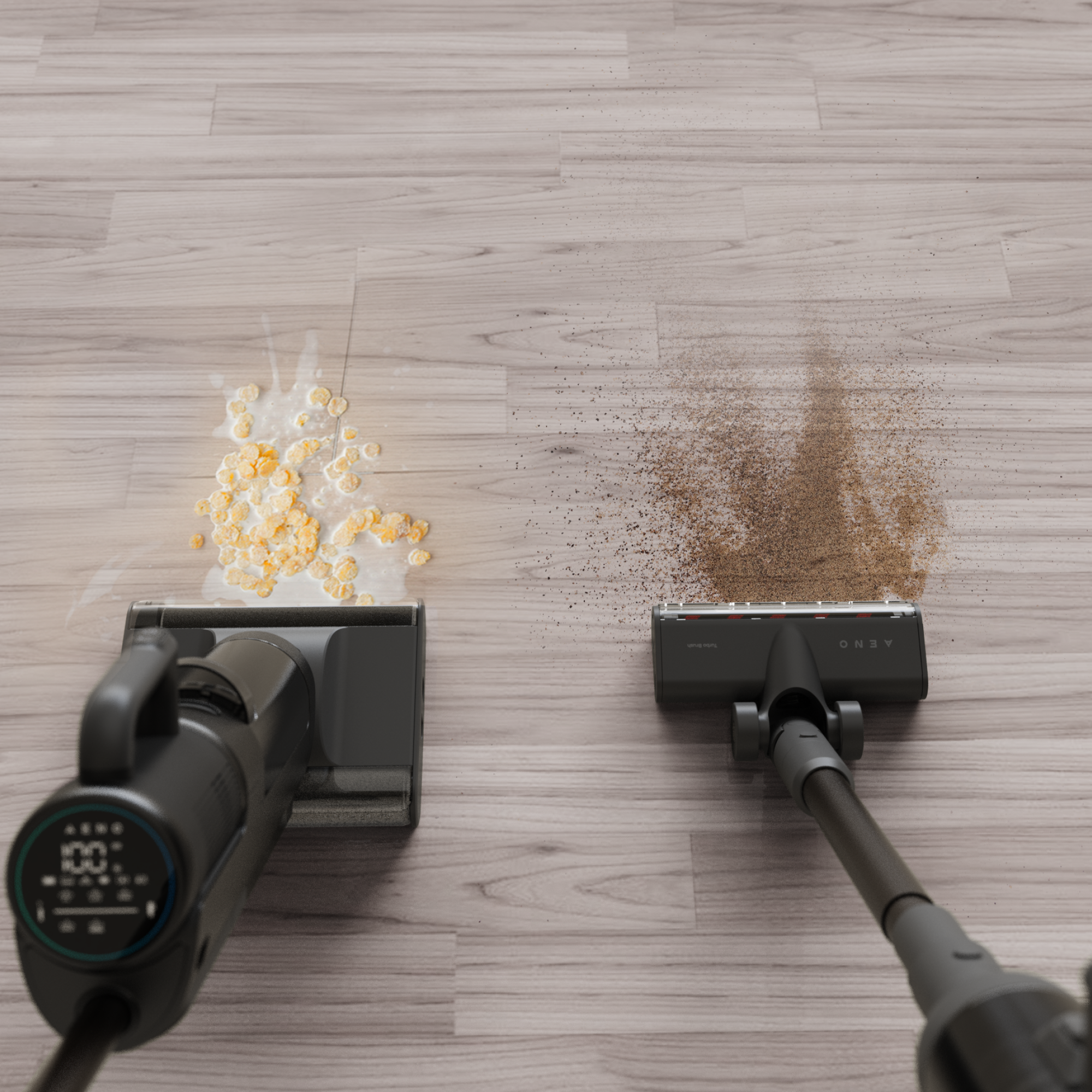 Трансформиращата се прахосмукачака AENO се справя с всички възможни бъркотии, които могат да се появят; просто регулирайте настройките за почистване по подходящ начин. Наслаждавайте се на ефективно почистване и се справяйте безпроблемно с всякакъв вид мръсотия или прах