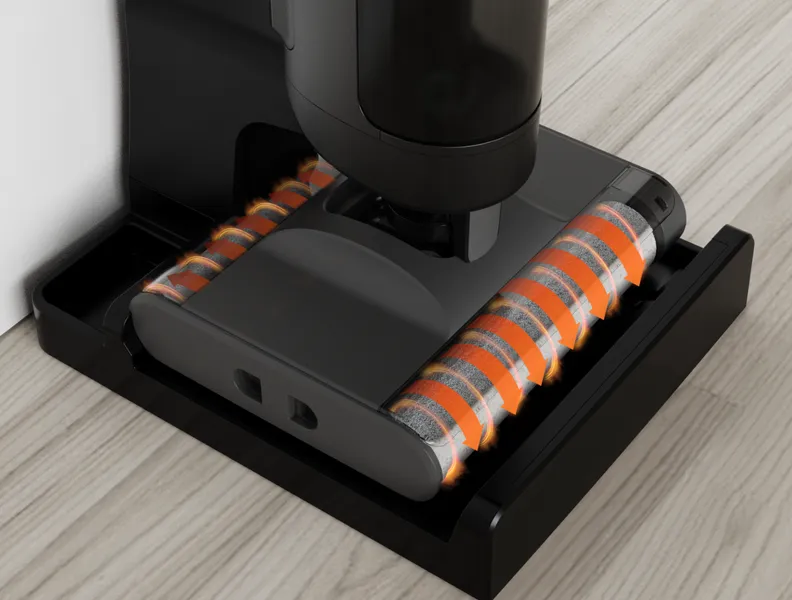 След прецизното почистване ролките ще се изсушат с горещ въздух от специалните изходи. Самоизсушаването отнема до 180 минути, в зависимост от това колко замърсени са били ролките. Това изсушаване предотвратява появата на миризми и подготвя трансформатора за следващата сесия на почистване