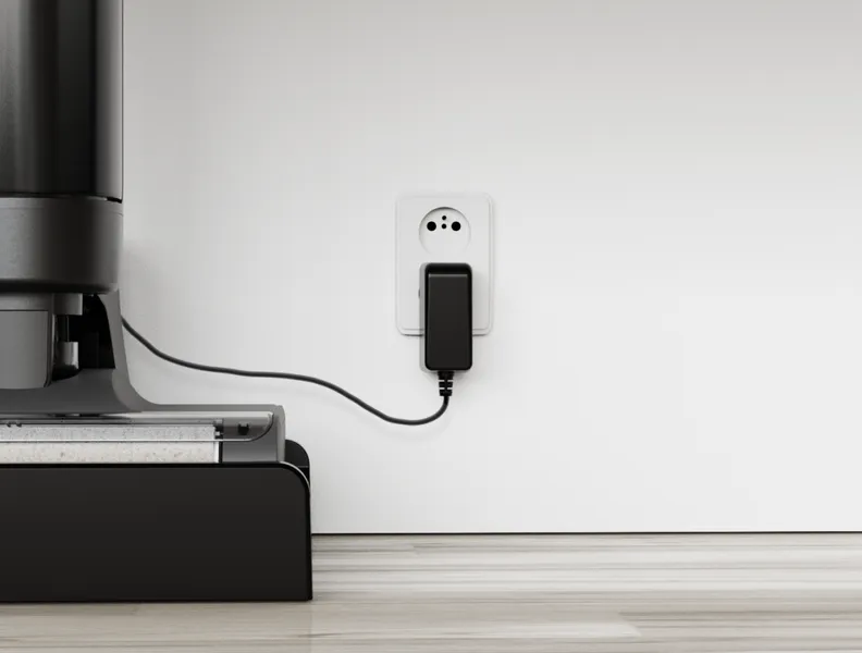 Съхранението и поддръжката са интелигентни и лесни. Оборудвана е със станцията за самопочистване и самоизсушаване за почистване на подове плюс държач за прахосмукачка и всички аксесоари. Не е необходимо да пробивате стените; тази конфигурация ще пасне идеално на интериора и няма да заема много място