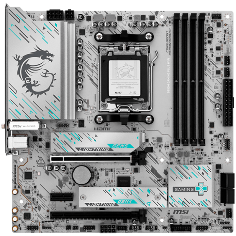 MSI B850M GAMING PLUS WIFI, mATX, Socket AM5, 4x DDR5 Dual Channel DDR5 up to 8200(OC)MHz, 2x PCIe x16 slot, 2x M.2 slot, 3x USB 5Gbps, 3x USB 10Gbps, 2x USB 10Gbps Type-C, HDMI, DP, 7.1 HD Audio, 5G LAN, WiFI 7, BT, 3Y