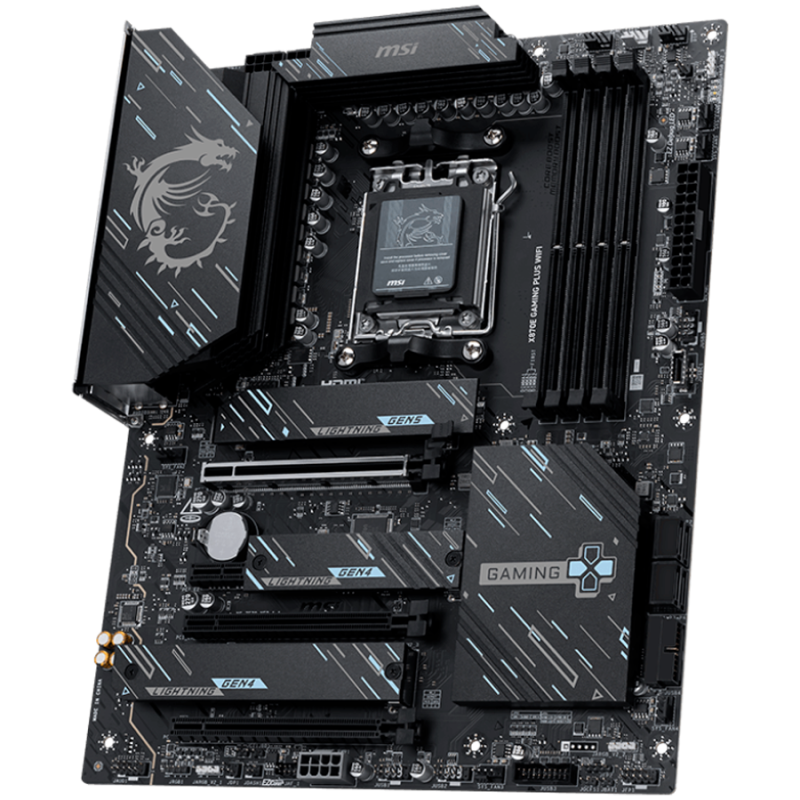 MSI X870E GAMING PLUS WIFI, ATX, Socket AM5, 4x DDR5 Dual Channel DDR5 up to 8200(OC)MHz, 3x PCIe x16 slot, 3x M.2 slot, 4x USB 2.0, 2x USB 5Gbps, 2x USB 10Gbps, 1x 20Gbps Type-C, 1x 40Gbps Type-C, HDMI, 7.1 HD Audio, 5G LAN, WiFi 7, BT, 3Y