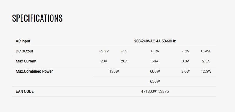 | МОЩНОСТ НА ЗАХРАНВАЩ БЛОК | 650 W |