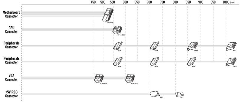 | КОНЕКТОРИ | PCI-Express 6+2 pin x 2 Molex x 3 SATA x 5 4+4 Pin ATX/EPS x 1 20+4 Pin ATX x 1 RGB Addressable +5V |