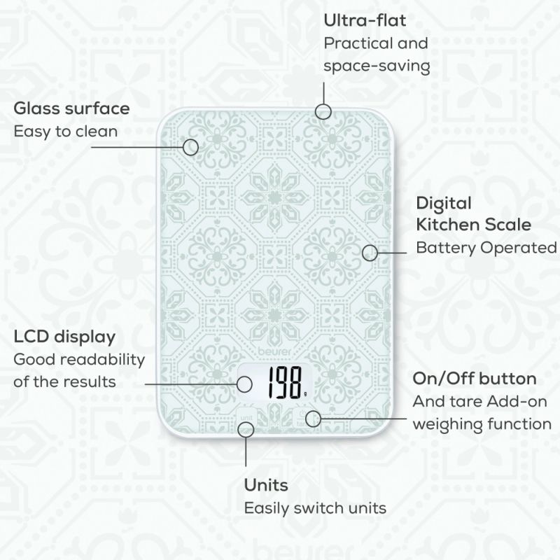 Modern touch key operation; Easy-to-clean glass surface; Ultra-slim: Only 16 mm; 1 x 3 V CR2032 battery
